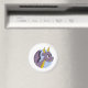 Magnet with illustration of head of a cute purple flying dragon in blue circle, fairy-tale / fantasy design for kids by Maxi Harmony