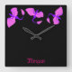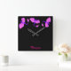 Customise this dragon clock with your name or other text. Three pink and purple dragons are arranged across the top of the clock on a black background. At the bottom of the clock there is an area to personalise the text in an old english style font. The text is in a coordinating shade of pink. I created this design to appeal to young women (think teenager) with both a darker side as well as a feminine side. This design merges both using simple vector graphics to make a bold statement.