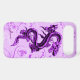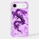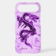 Fantasy iPhone 6 Plus case with awesome graphics of a purple Chinese style dragon, against a stylish lavender floral background. Personalise the purple text, at the bottom, for yourself or as an outstanding gift idea to your favourite fantasy fan.