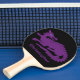 This purple dragon design ping pong bat, or table tennis racket, can be customised with any text. The paddle is laminated wooden with a choice of a EVA on one side for graphic printing and a 2 ply "pips in" rubber face on the other or EVA on both sides for graphic images. Players select bats based on their playing style, considering the blade's materials for speed and power, the sponge's thickness for control, and the rubber's tackiness for spin. Should you require any help with customising then contact us through the message link on this page. Dragon design table tennis bat.