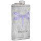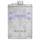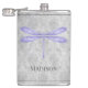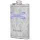 Enjoy your favourite alcoholic beverages anytime with a Purple Dragonfly Damask Vinyl Wrapped Flask. Flask design features a colourful dragonfly against an elegant vintage grey damask pattern. Additional gift items available with this design as well.