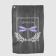 Personalise a unique towel for golfing with a Purple Dragonfly Rustic Personalised Golf Towel. Towel design features a vibrant dragonfly adorned with delicate foliage against a dark grey rustic wooden background. Additional gift items available with this design as well as a variety of colours.