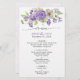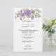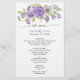 Reception menu designed with pretty hand painted watercolor flowers in purple and lilac.
