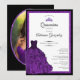 This elegant purple quinceanera invitation has a purple printed glitter dress, a purple tiara crown, and a custom photo on the back with a personalizable template to create your own invitation. The template is customizable in the listing editor and is also available as a digital download that's printable after you personalize it.