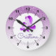 Purple Dripping Glitter & Purple Unicorns / Round Clock