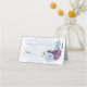 Purple dusty blue flowers green leaves wedding place card