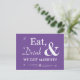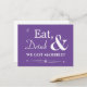 Invite friends and family to help you celebrate your recent marriage with this funky retro white on purple Eat, Drink & Be Married! elopement party invitation postcard.