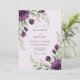 This design features a delicate wash of light lavender across the background, accented by vibrant deep purple cosmos flowers. Rich sage green foliage and graceful sprigs of leaves adorn the edges, creating a romantic botanical aesthetic. This sophisticated watercolor artwork is perfect for a seasonal spring event, offering a striking contrast against the soft pastel backdrop.