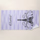 Dry off in style by the pool or at the beach with a Purple Eiffel Tower Flourish Personalised Beach Towel. Towel design features the Eiffel Tower adorned with elegant flourishes against a wavy purple background. Additional colours available with this design as well. This item may be personalised with a name, monogram, or favourite saying of your choosing. Please contact me if you need assistance with personalisation.