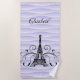 Purple Eiffel Tower Flourish Beach Towel