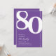 Introducing a trendy purple and white 80th birthday party invitation that seamlessly blends the old-world charm of the bold serif font number '80' with a modern, user-friendly personalizable template. This invitation isn't just a card, it's a meaningful keepsake to cherish the milestone of turning 80.