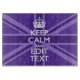 Your personalised Keep Calm saying on an elegant purple mauve accent union jack decor. A personalised Keep Calm style saying on a one of a kind gift. Humourous or whimsical try on your creative words on two editable lines of text. Remember to use CAPITAL letters for best results.