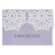Simple and sophisticated Elegant Lace Wedding Table Number Card featuring a white lace doily motif on a light purple faux vintage paper background. This classic and stylish table card is perfect for a rustic wedding. Easy to customise with the appropriate table number(s). Click "Customise It" to find more personalisation options.
