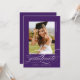 Purple Modern Elegant Script Photo Graduation Party Invitation features a beautiful and elegant script overlaying your photo, along with your party details and photo on the back.