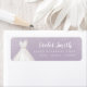 Watercolor white dress with white glitter on soft purple background, modern and elegant.