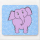 Purple Elephant Cartoon. Blue Floral Background. Mouse Pad
