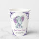 Customisable paper cups for birthday or baby shower or birthday with cute watercolor elephant girl in purple theme. You can add two lines of any text. Rustic style. matching items here https://www.zazzle.com/collections/purple_rustic_elephant_theme_ao144pr-119038446732911779