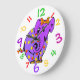This colourful Purple elephant wall clock design would be perfect for a child's bedroom or play room. The large colourful numbers makes it easy to read too.