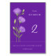 Table Card Number with elegant bouquet from purple eustomas flowers and light green leaves, pastel coloured spring or summer softness romantic floral eustomas rose flowers. Botanical digital watercolor painting. Floral blossom botany Table Card Number. Purple Eustomas Collection.