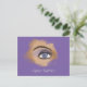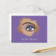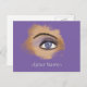 An artistic illustration of a beautiful woman's eye with a blue iris and vibrant shades of purple and violet for eye shadow. There is a splattered border around the eye which adds mystery to the image. The background is a vivid purple that matches one of the hues in the eye makeup. This design will appeal to most women, but perhaps makeup artists and models in particular.