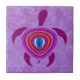 A purple sea turtle with a vivid blue eye in its back. Tiles are available in two sizes: 4.25 x 4.25 inch and a large 6 x 6 inch.