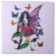 Purple Fairy Mushroom Butterflies Ceramic Tile