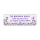A magical fairy and her butterfly friend flutter and twirl cross a watercolor floral landscape on this purple fairy party return address label.