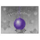 Prepare meals during the holiday season with the help of a Purple Fancy Christmas Ornament Cutting Board. Cutting board design features a purple fancy ornament against a grey gradient background adorned with falling snowflakes. Additional gift and holiday items available with this design as well.