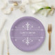Simple and elegant Fancy Ornamental Wedding Paper Plates in lavender and white featuring a sophisticated art deco style ornamental flourish border. Easy to customise, simply add your wedding details in the text fields provided. Click "Customise It" to find more personalisation options.