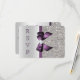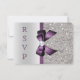 Purple Faux Bow Silver Sequins Diamond RSVP Card