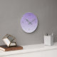 This beautiful and glamourous wall clock features a purple coloured, faux glitter style background. The glitter appears more dense near the top of the clock and gradually fades towards the bottom.