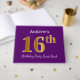 Purple, Faux Gold 16th Birthday Party; Custom Name Guest Book
