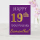 Purple, Faux Gold 19th Wedding Anniversary + Name Card