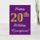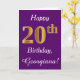 Purple, Faux Gold 20th Birthday + Custom Name Card
