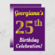 Purple, Faux Gold 25th Birthday Celebration + Name Invitation