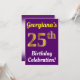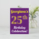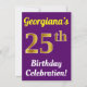 This birthday party invitation design features a message like "Georgiana’s 25th Birthday Celebration!", where the name can be customised, and where the number "25th" has a faux gold-like appearance. It also features a purple coloured background. The event details on the back can be customised. It could be used to invite people to somebody’s twenty fifth birthday celebration or birthday party. [~Z0000121]