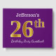 This guest book design features the ordinal number "26th" with a faux/imitation gold-like appearance. It also features a personalised name, and a purple coloured background. It could be used at a party for somebody celebrating their twenty sixth birthday. [~Z0000057]
