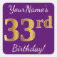Purple, Faux Gold 33rd Birthday + Custom Name Square Sticker