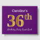 Purple, Faux Gold 36th Birthday Party; Custom Name Guest Book