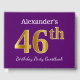 This guest book design features the ordinal number "46th" with a faux/imitation gold-like appearance. It also features a customised name, and a purple coloured background. It could be used at a party for somebody celebrating their forty sixth birthday. [~Z0000057]