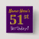 Purple, Faux Gold 51st Birthday, With Custom Name 15 Cm Square Badge