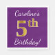 Purple, Faux Gold 5th Birthday + Custom Name Napkin