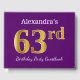 This guest book design features the ordinal number "63rd" with a faux/imitation gold-like appearance. It also features a custom name, and a purple coloured background. It could be used at a party for somebody celebrating their sixty third birthday. [~Z0000057]
