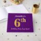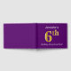 This guest book design features the ordinal number "6th" with a faux gold-like appearance. It also features a personalised name, and a purple coloured background. It could be used at a party for somebody celebrating their sixth birthday. [~Z0000057]
