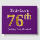 This guest book design features the ordinal number "76th" with a faux/imitation gold-like appearance. It also features a custom name, and a purple coloured background. It could be used at a party for somebody celebrating their seventy sixth birthday. [~Z0000057]
