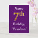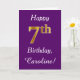 This simple birthday card design features the message "Happy 7th Birthday", with the "7th" having a faux gold-like appearance. It also features a personalised name, and a purple background. It could be given to somebody who is celebrating their seventh birthday.