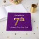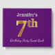 This guest book design features the ordinal number "7th" with a faux gold-like appearance. It also features a custom name, and a purple coloured background. It could be used at a party for somebody celebrating their seventh birthday. [~Z0000057]