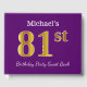 Purple, Faux Gold 81st Birthday Party; Custom Name Guest Book