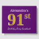 Purple, Faux Gold 91st Birthday Party; Custom Name Guest Book
