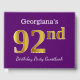 This guest book design features the ordinal number "92nd" with a faux/imitation gold-like appearance. It also features a personalised name, and a purple coloured background. It could be used at a party for somebody celebrating their ninety second birthday. [~Z0000057]